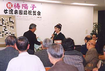 21世紀になって間もない2001年1月7日、当囲碁クラブから育っていった祷陽子五段の女流本因坊祝賀会が盛大に執り行なわれました。