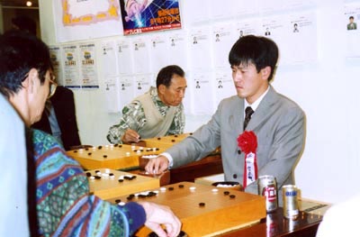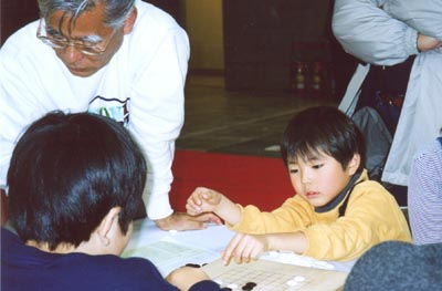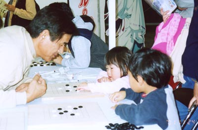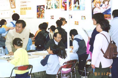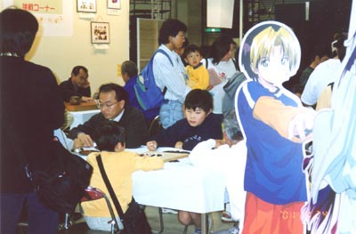 2001年11月24日。午後から幕張メッセで開かれている「ちば文化祭2001」に出かけた。ここでは千葉県少年少女囲碁連盟が潤処(うるおいどころ)で「ヒカルの碁囲碁入門」を開いていた。子供達が大勢詰め掛けていた。大人も指導碁を受けていた。インターネット対局、石取りゲームなど先生方が一生懸命相手をしていた。ジャンプコミック「ヒカルの碁」のコーナーで一心に読んでいる子供が多いのにも驚いた。明日はどれだけ押し寄せてくるか楽しみだ。
